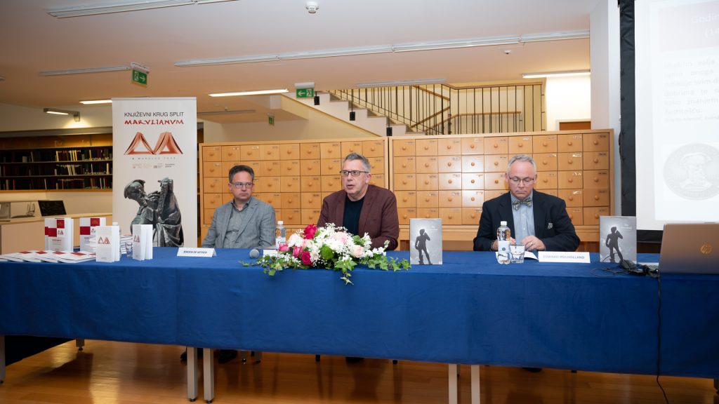 Nakon pozdravnih riječi, prijevod Marulićeve Davidijade predstavili su profesor Neven Jovanović s Filozofskog fakulteta u Zagrebu, prevoditelj Edward Mulholland i Jeroen De Keyser iz izdavačke kuće LYSA Publishers koji je Knjižnici tom prigodom poklonio jedan primjerak engleskog izdanja The Davidiad.