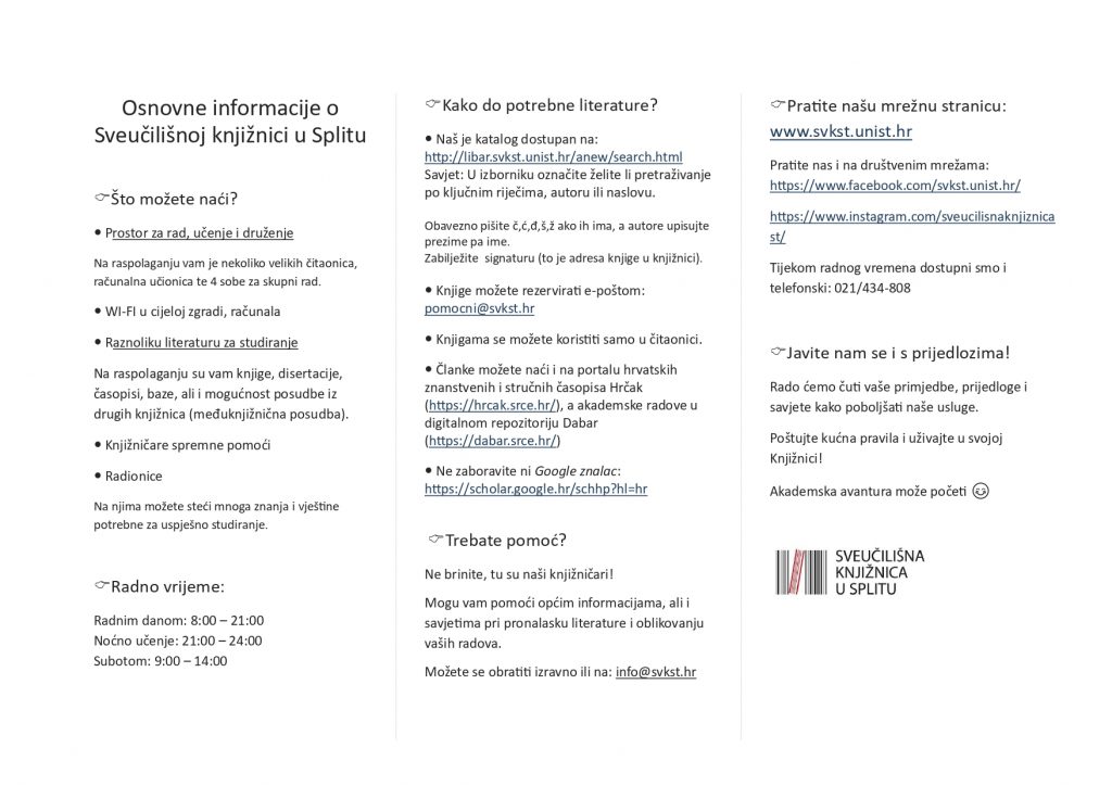 Pratite našu mrežnu stranicu, pišite nam na info@svkst.hr i posjetite svoju Sveučilišnu knjižnicu!