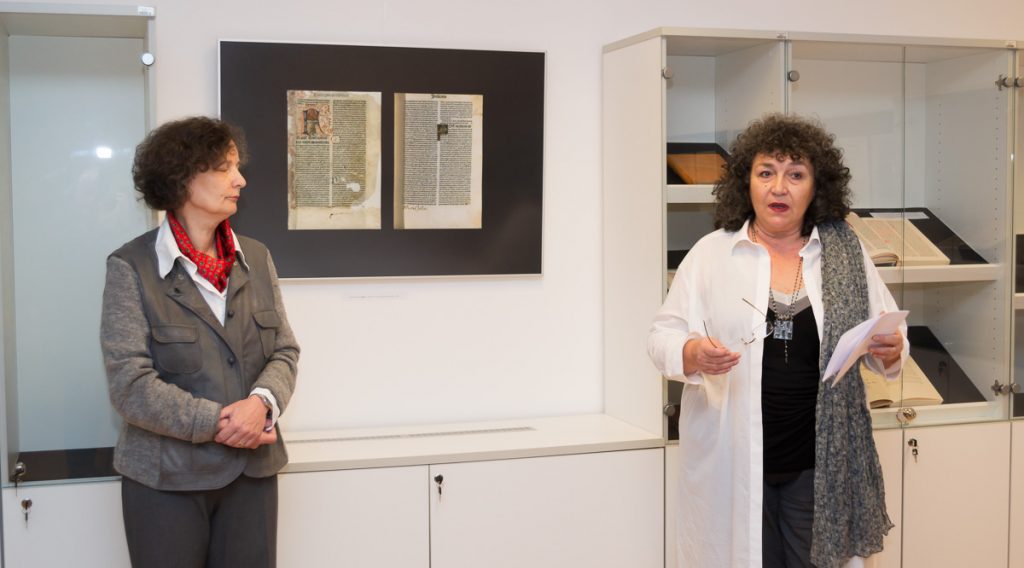 Pored navedenog djela sv. Augustina – novonabavljene inkunabule, objavljene 1495. u Veneciji, autorica izložbe Mihaela Kovačić, voditeljica Odjela, predstavila je i posebnosti ostale građe – od sadržajne i tehničke do kulturno-povijesne. Značenje zbirke inkunabula za Knjižnicu i Sveučilište u cjelini naglasila je ravnateljica Ana Utrobičić koja je ujedno i otvorila izložbu.