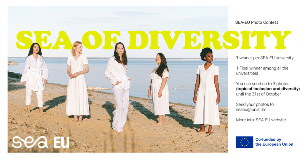 Sveučilište u Splitu, zajedno s partnerima iz Alijanse Europskog sveučilišta mora, poziva vas na sudjelovanje u natjecanju Photo Contest s temom „A sea of diversity.“ U natjecanju mogu sudjelovati i studenti i zaposlenici Sveučilišta. Svoje fotografije možete poslati na adresu seaeu@unist.hr u razdoblju od 1. rujna do 31. listopada 2023.