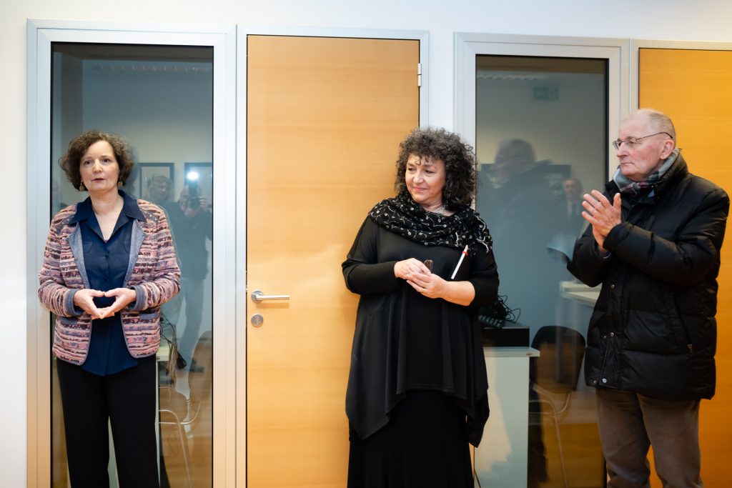 Prvi dio svečanosti završen je uzvišenom izvedbom dviju skladbi akademskog zbora Silvije Bombardelli, a putem QR koda na projekcijskom platnu posjetitelji su mogli otploviti i do virtualne izložbe kojom je ispričana priča o Knjižnici i njezinim ljudima.