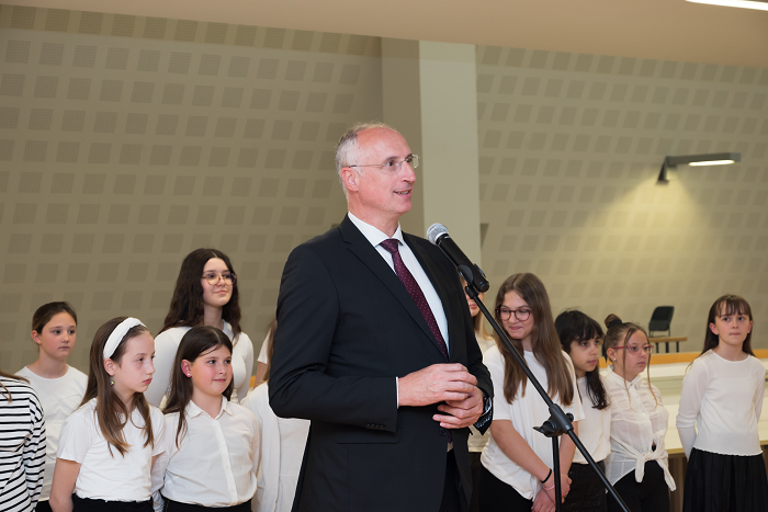 Svečanost je započela hrvatskom himnom koju je izveo zbor Osnovne škole Split 3 pod vodstvom prof. Karmen Širović. Zbor je još izveo dječju pjesmu Jakova Gotovca pod nazivom „Dom.“ Zatim je na klaviru nastupila prof. Jelena Buble koja je odsvirala skladbu Gotovčevog učitelja Vjekoslava Ružića-Rosemberga „Pozdrav Splitu.“ Skladba je nastala negdje oko Gotovčevog rođenja, krajem 19. st., dok je Ružić-Rosemberg bio voditelj muzikalnog društva Zvonimir.