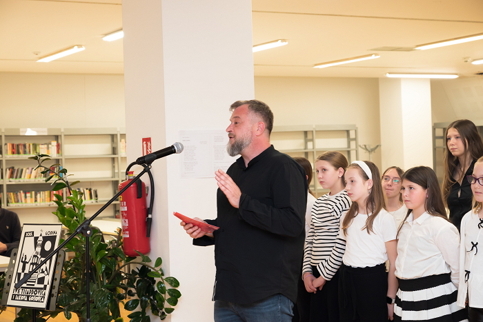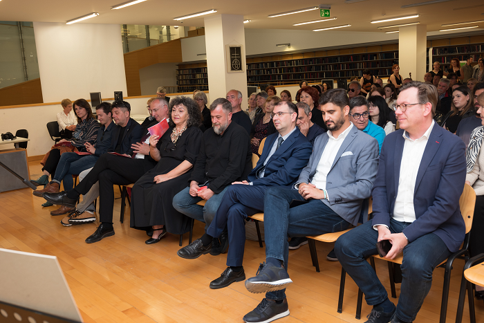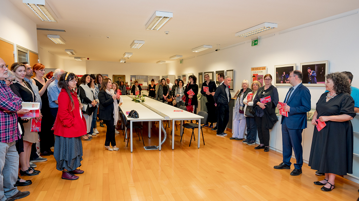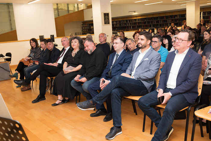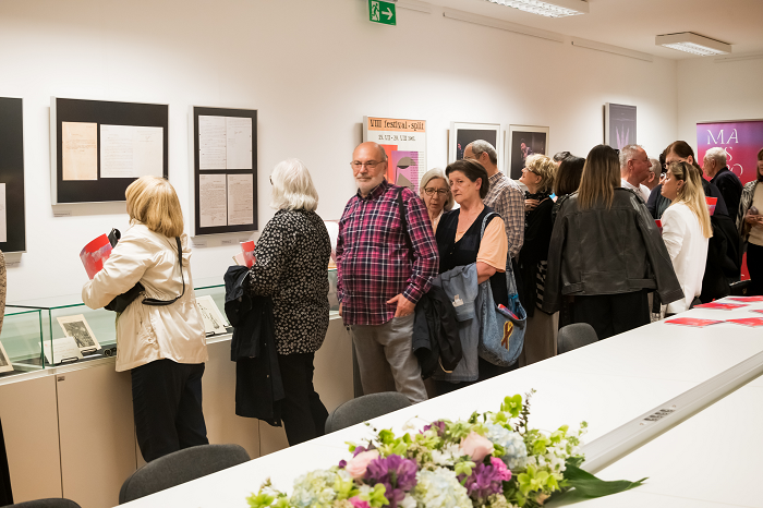Sve je srdačno pozdravila i ravnateljica Sveučilišne knjižnice, kao domaćina događanja, gospođa Ana Utrobičić koja je istaknula kako je izložba realizirana u suradnji s brojnim kulturnim ustanovama, kao što su: Hrvatsko narodno kazalište u Splitu, Muzej Grada Splita, Državni arhiv u Splitu, KUD Jedinstvo, Muzej za umjetnost i obrt u Zagrebu, Teatro La Fenice u Veneciji, Nacionalna i sveučilišna knjižnica u Ljubljani i brojne druge. Također je u ime organizatora posebno zahvalila studenticama grafičkog dizajna na Umjetničkoj akademiji u Splitu Yasmini Aniki Doršner i Filipi Ivanda koje su pod mentorstvom prof. art. Igora Čaljkušića osmislile cjelokupni vizualni identitet manifestacije i grafički uredile katalog izložbe.