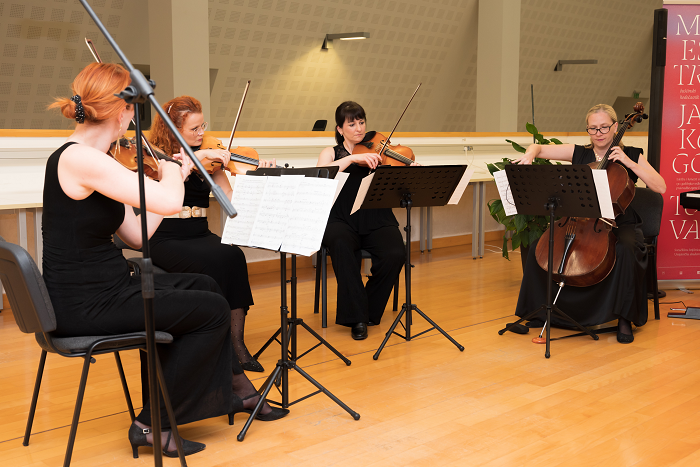 Koncert je moderirala koordinatorica manifestacije Godina Ive Tijardovića i Jakova Gotovca gospođa Herci Ganza koja je predstavila publici tim koji je radio na ovom projektu: knjižničarke Sveučilišne knjižnice Mihaelu Kovačić, Abru Papić i Damiru Bašić te knjižničarke Umjetničke akademije Žanu Siminiati Violić i Maju Džaja Krile. Po završetku glazbenog programa, na Odjelu specijalnih zbirki otvorena je izložba pod nazivom „Maestro Jakov Gotovac: bašćinski hodočasnik.“ Nazočne je najprije pozdravila autorica projekta Damira Bašić, stručna suradnica na Odjelu specijalnih zbirki, a izložbu je svečano otvorio prorektor za znanost i kvalitetu prof. dr. sc. Igor Jerković.