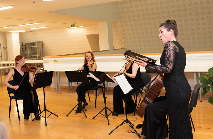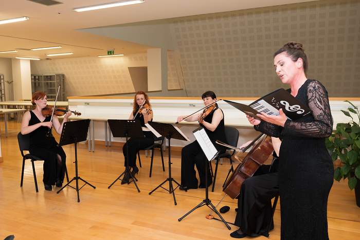 Uslijedio je nastup Gudačkog kvarteta Floramye koji je izveo prvi stavak Gotovčevog gudačkog kvarteta „Pjesma, poziv i ples Op. 16.,“ a zatim je uz pratnju kvarteta nastupila Antonija Teskera, sopranistica HNK Split koja je intepretirala Gotovčevu solo-pjesmu na tekst Veljka Petrovića „Zašto smo se sreli!.“ Potom je nastupio izvrstan Sveučilišni zbor Silvije Bombardelli sa skladbom „Kamena djeva“ koju je Gotovac skladao na stihove Antuna Mihanovića. Zborom je ravnao Teo Pehal.