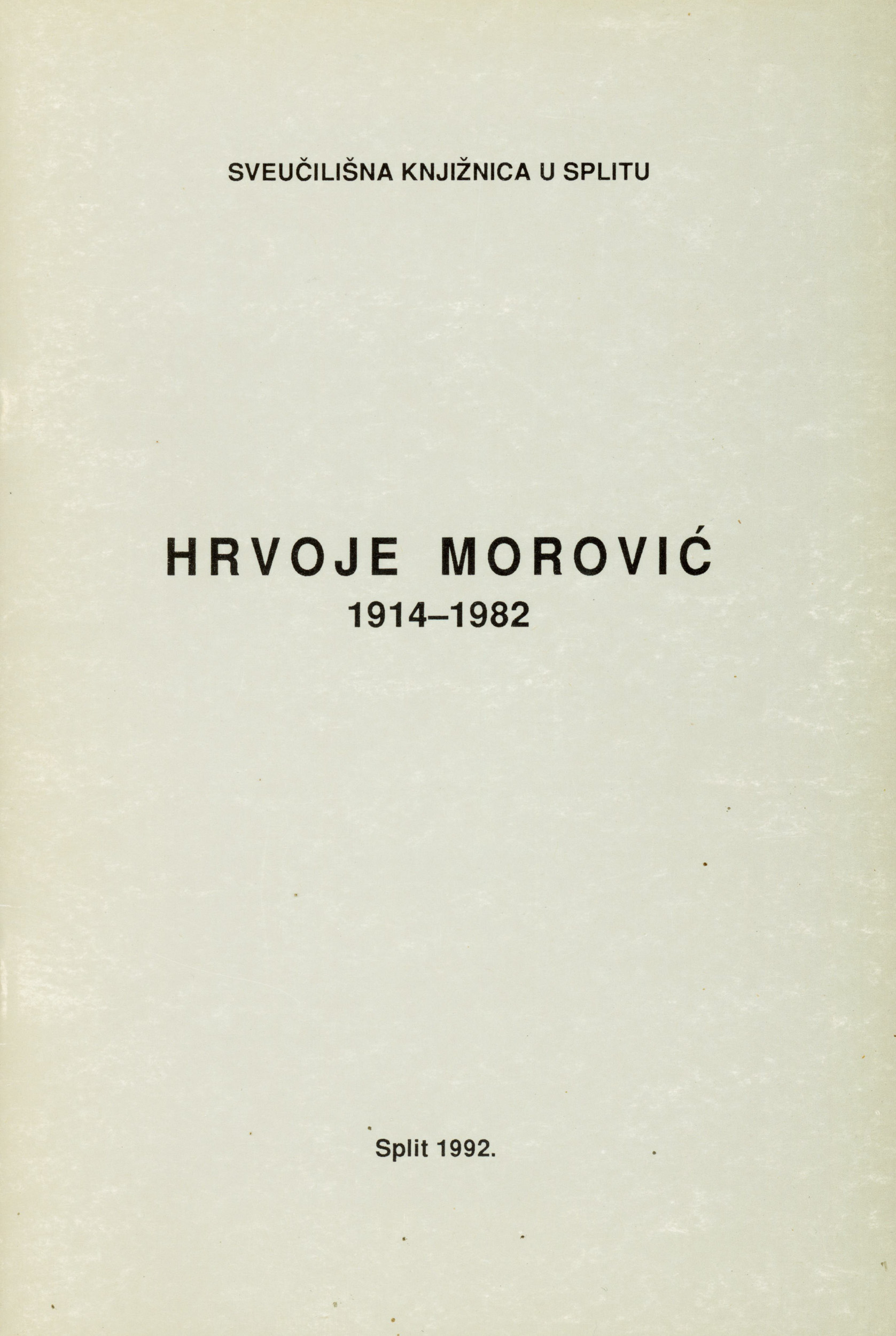 S poštovanjem prof. Hrvoju Moroviću (1914-1982). Split, 1992.