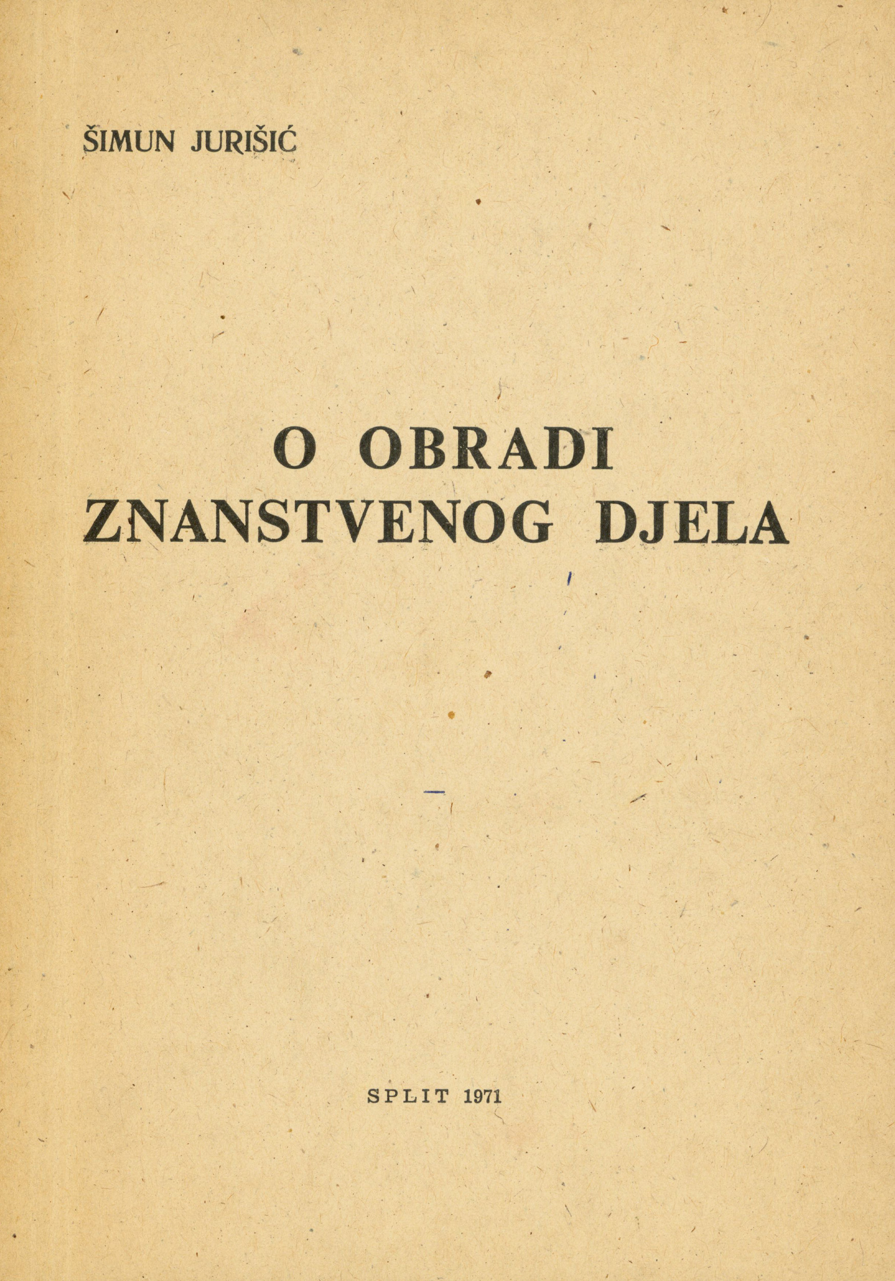 Šimun Jurišić: O obradi znanstvenog djela. Split, 1971.