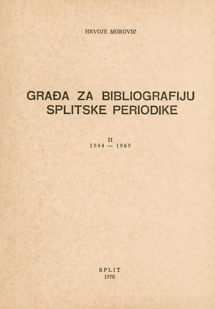 Hrvoje Morović: Građa za bibliografiju splitske periodike – Novine, bilteni, časopisi, godišnjaci : 1944 – 1969. Split, 1968.
